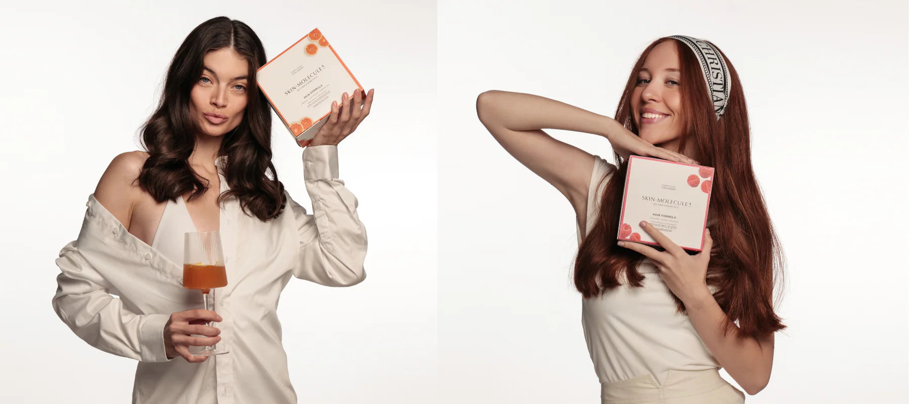 "SKIN MOLECULE X son suplementos de colágeno que se beben (..) posee una mayor concentración de componentes bioactivos y se absorbe hasta un 300% más que otros formatos”